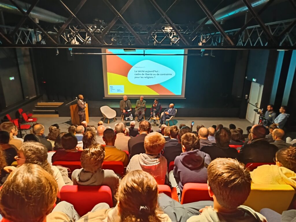 Une vingtaine d’élèves de 5ème ont pris le bus mardi 9 décembre afin de participer à une matinée autour de la laïcité, organisée par la préfecture. Après la présentation de M. le préfet et du maire de la Couronne, une conférence a été animée par les représentants des cultes catholique, protestant, juif et musulman, durant laquelle nos élèves ont pu poser des questions. Ensuite, 8 élèves de 5e et 6e sont montés sur scène afin de jouer la pièce “Laïcité, mon (petit) amour”, mise en scène par Pascale Ardoin. Enfin, les élèves membres de la chorale ont chanté “Né quelque part” de Maxime le Forestier. Le collège de Chalais a été félicitéé par M. le Préfet et M. Ambaud président de la Cdc Lavalette-Tude-Dronne, pour l’implication du personnel et des élèves pour cette journée.