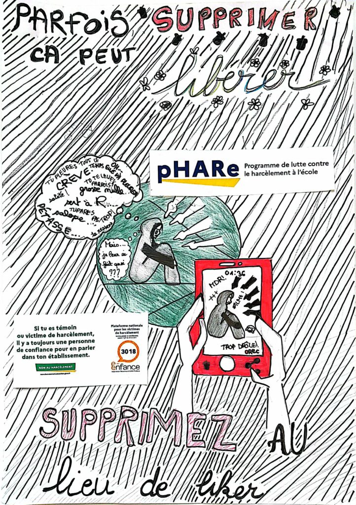 Les élèves ambassadeurs et ambassadrices du collège ont réalisé 9 affiches de sensibilisation pour lutter contre le harcèlement.