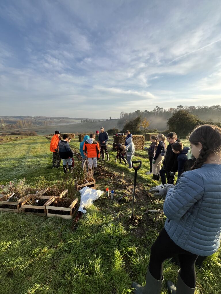 Les élèves de la 5ème B du collège de Chalais ont participé à une journée de plantation de haies dans la ferme de M. Condemine à Brossac, le Vendredi 12 décembre 2025. Cette journée, mise en place en lien avec l’association « Des enfants et des arbres », que nous remercions pour l’initiative et l’organisation, a permis aux élèves d’apprendre des techniques de plantation, de découvrir des espèces végétales et de comprendre l’importance des haies pour les cultures. Ce sont les élèves qui en parlent le mieux.