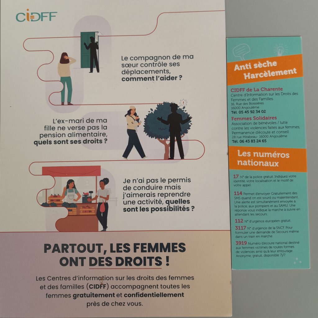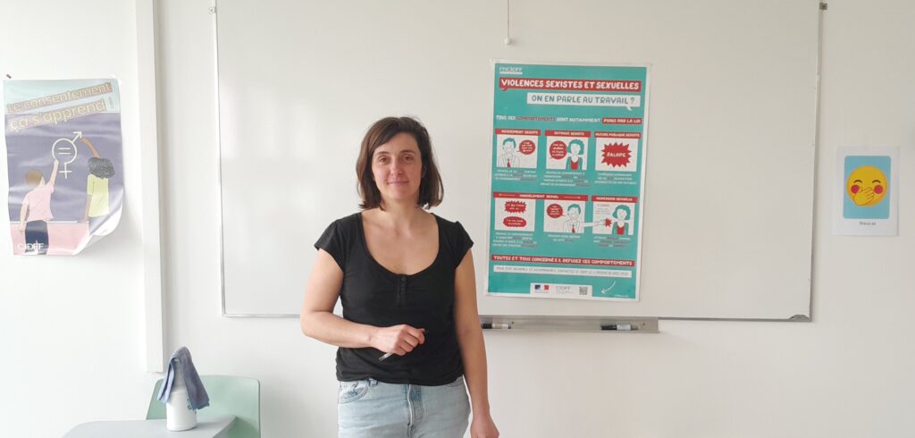 Aujourd’hui, jeudi 5 mars, pour les élèves de 3ème et lundi 9 mars, pour les 4ème, Violette du CIDFF intervient au sein du collège. Elle parle d’émotions, de communication et des droits de chacun.e. Un moyen pour apprendre à mieux se connaître, à se questionner et à questionner notre environnement à travers des débats mouvants.
