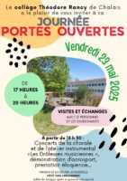 Le collège Théodore Rancy de Chalais a le plaisir de vous inviter aux portes ouvertes organisées le vendredi 23 mai 2025, de 17 à 20